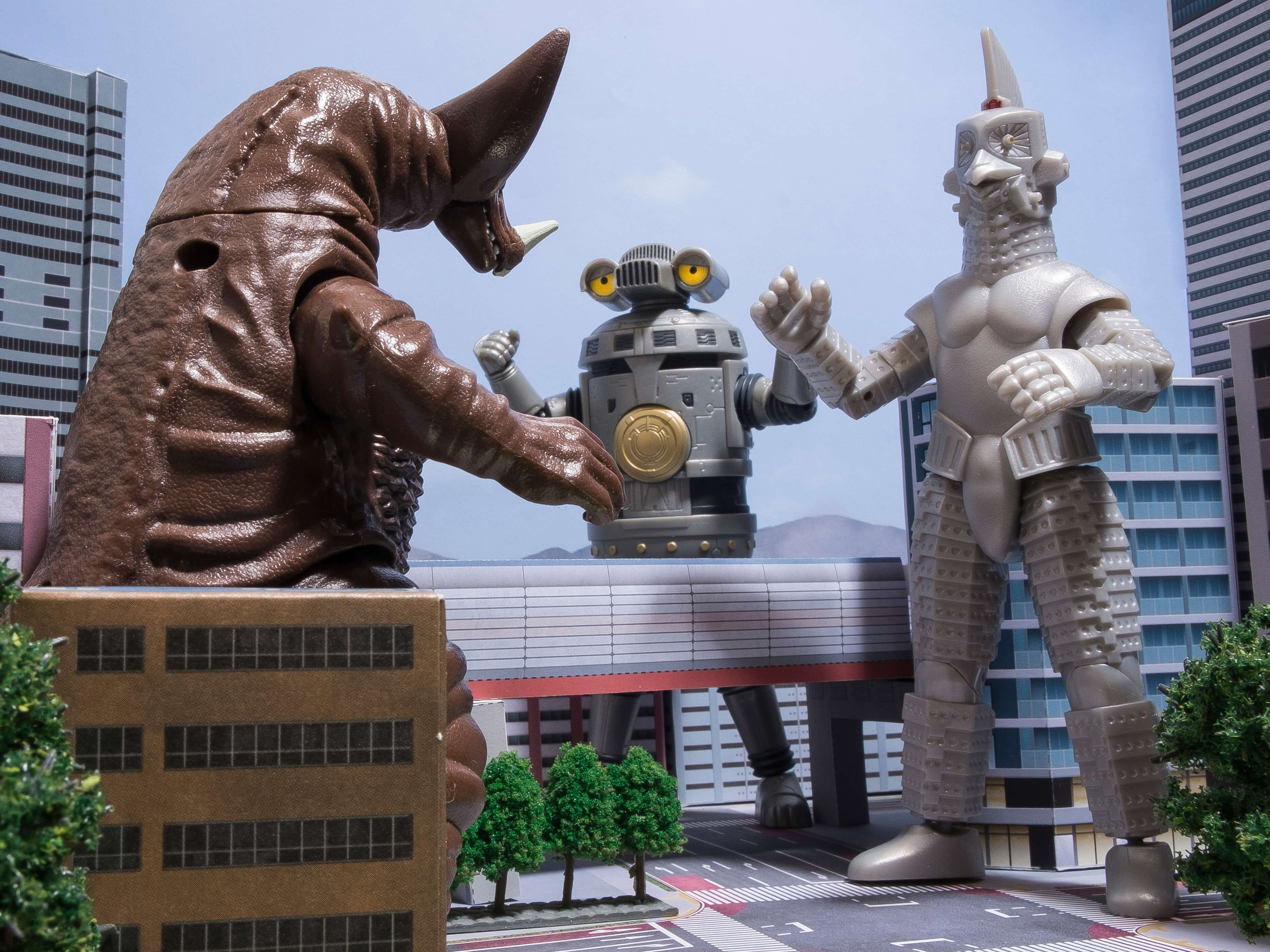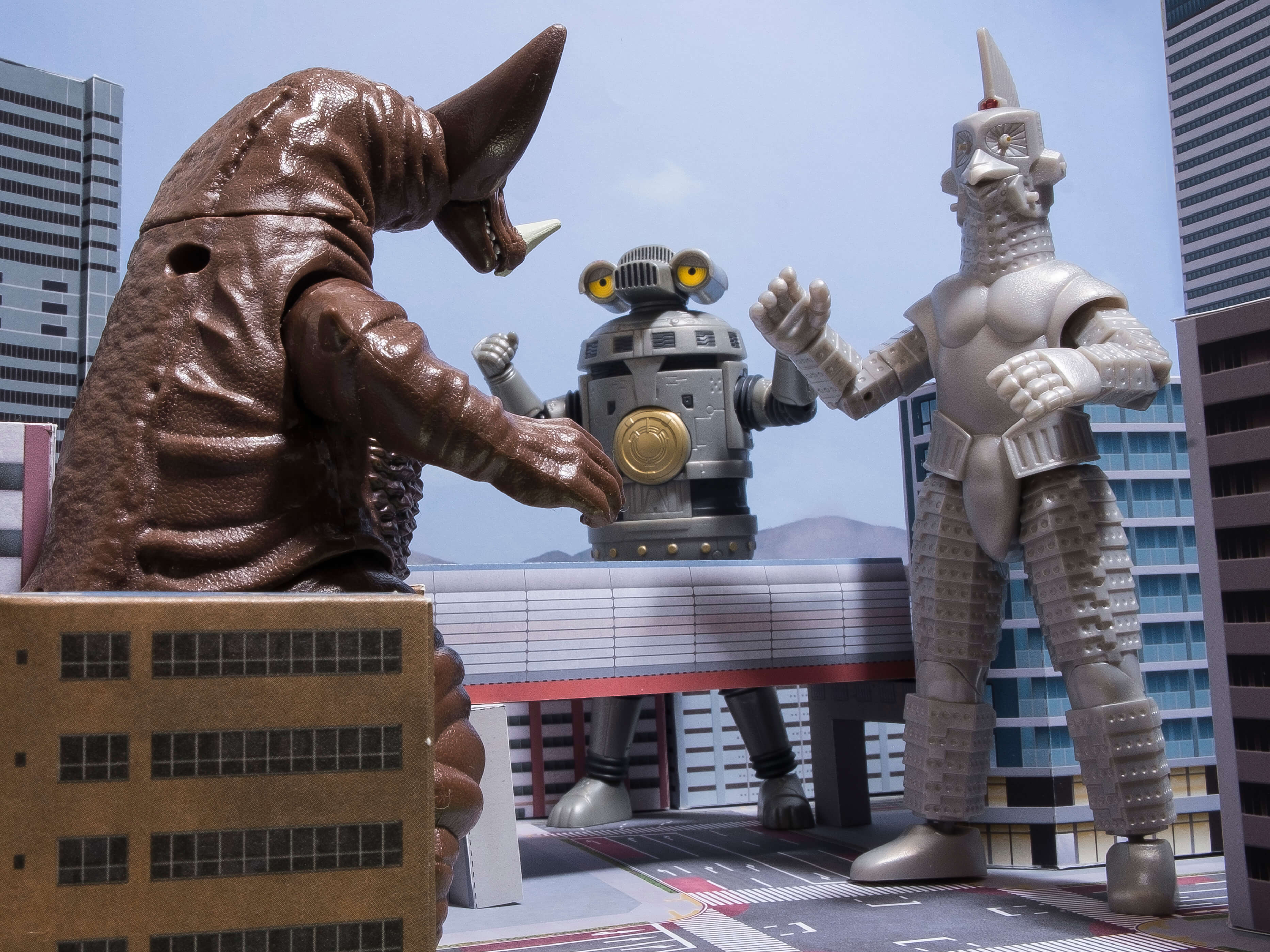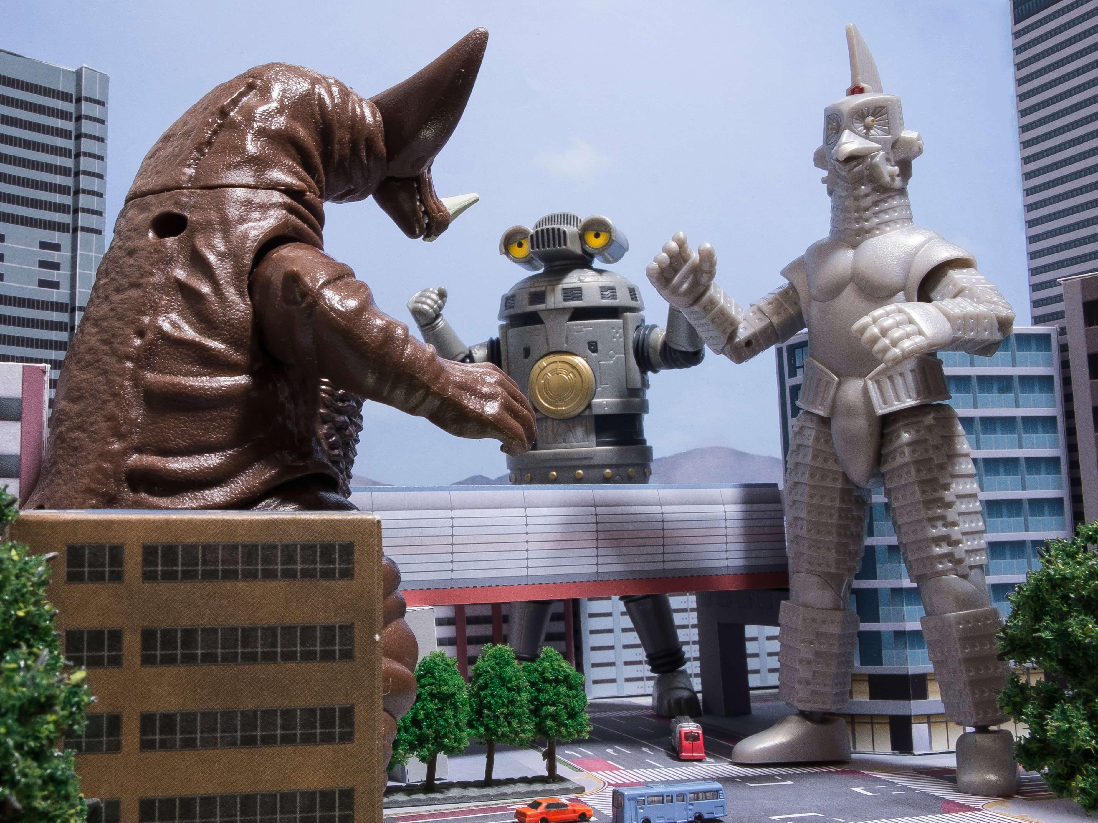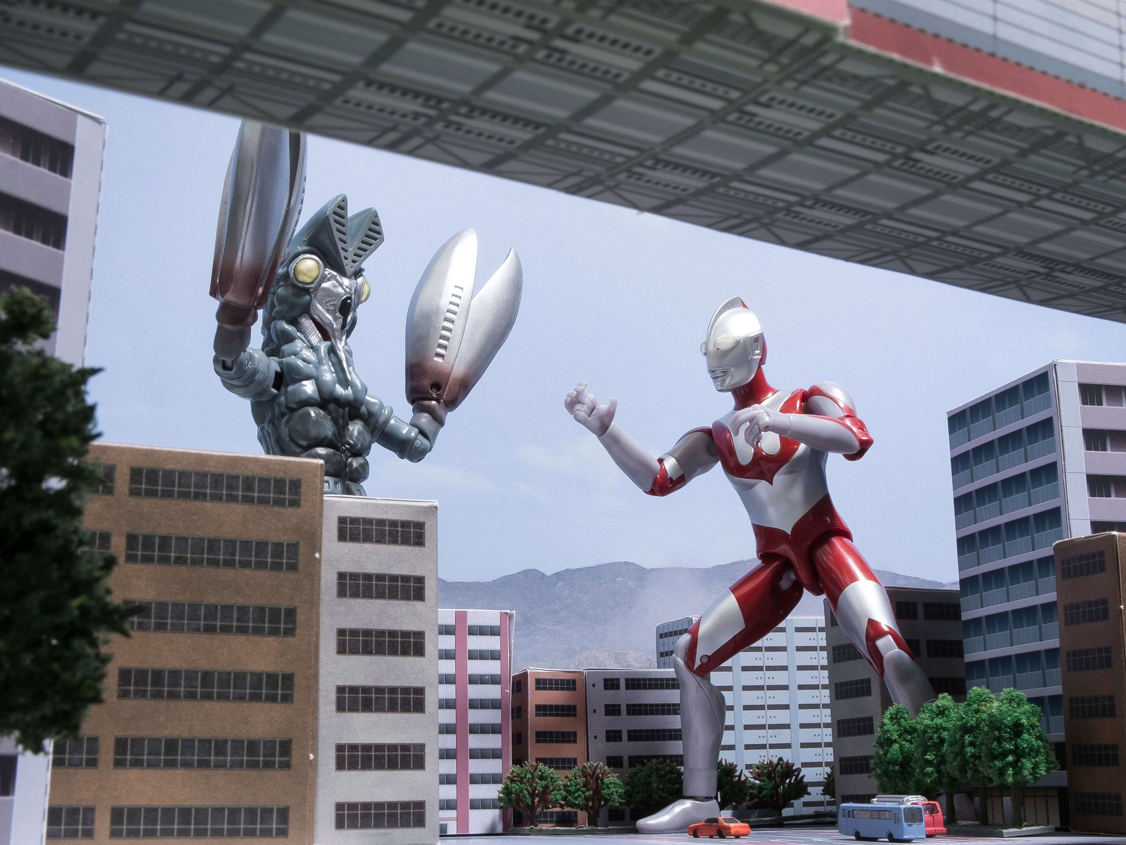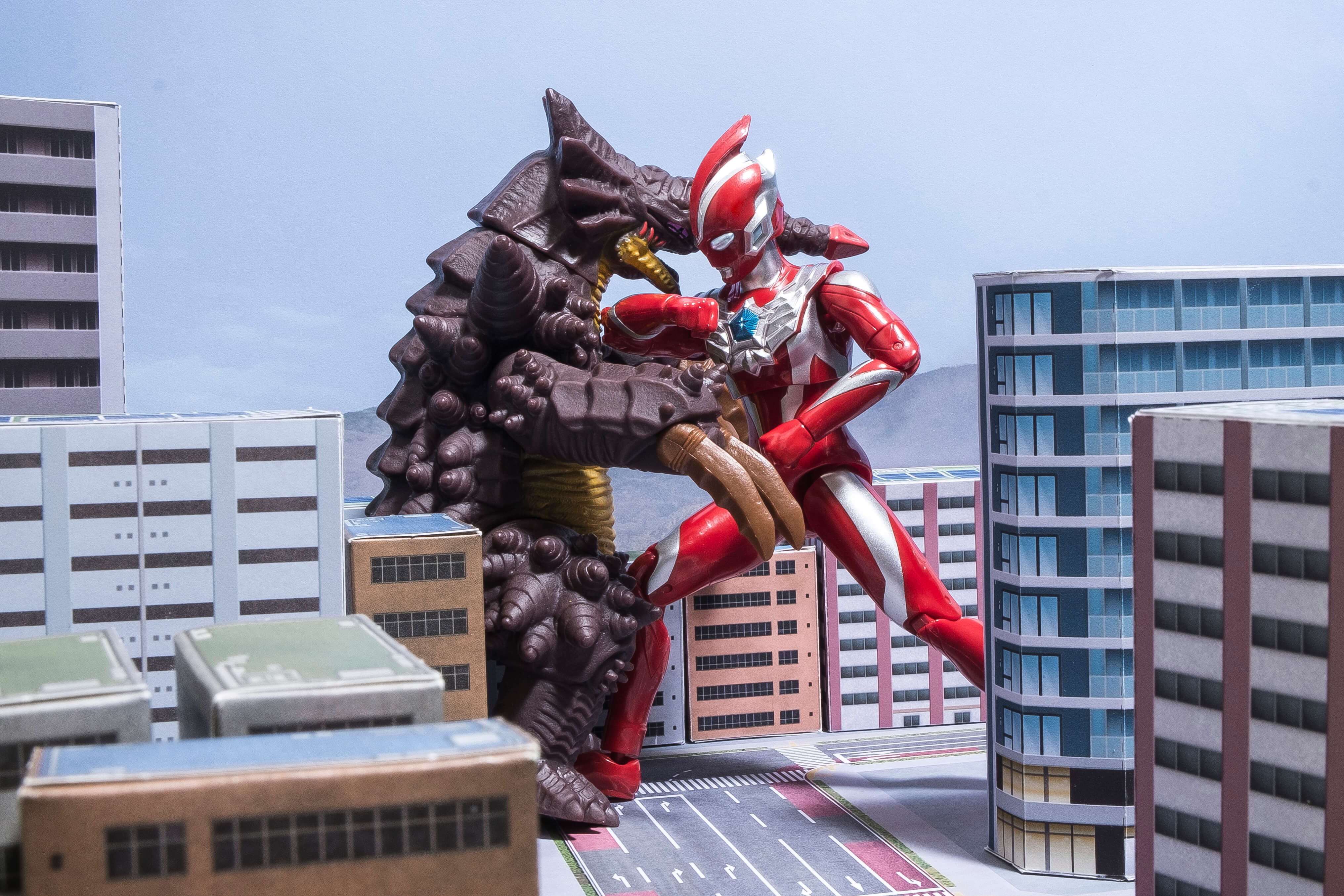 次に、フィギュアを道路シート上に配置しやや俯瞰気味な角度から撮影しました。道路が良く見えますね。