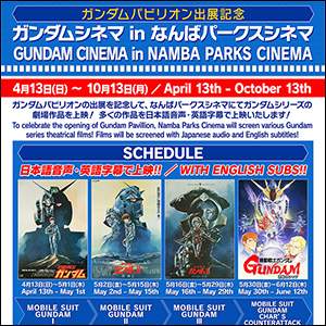 「ガンダムシネマ in なんばパークスシネマ」4月13日より開催決定!劇場作品を日本語音声・英語字幕で上映!