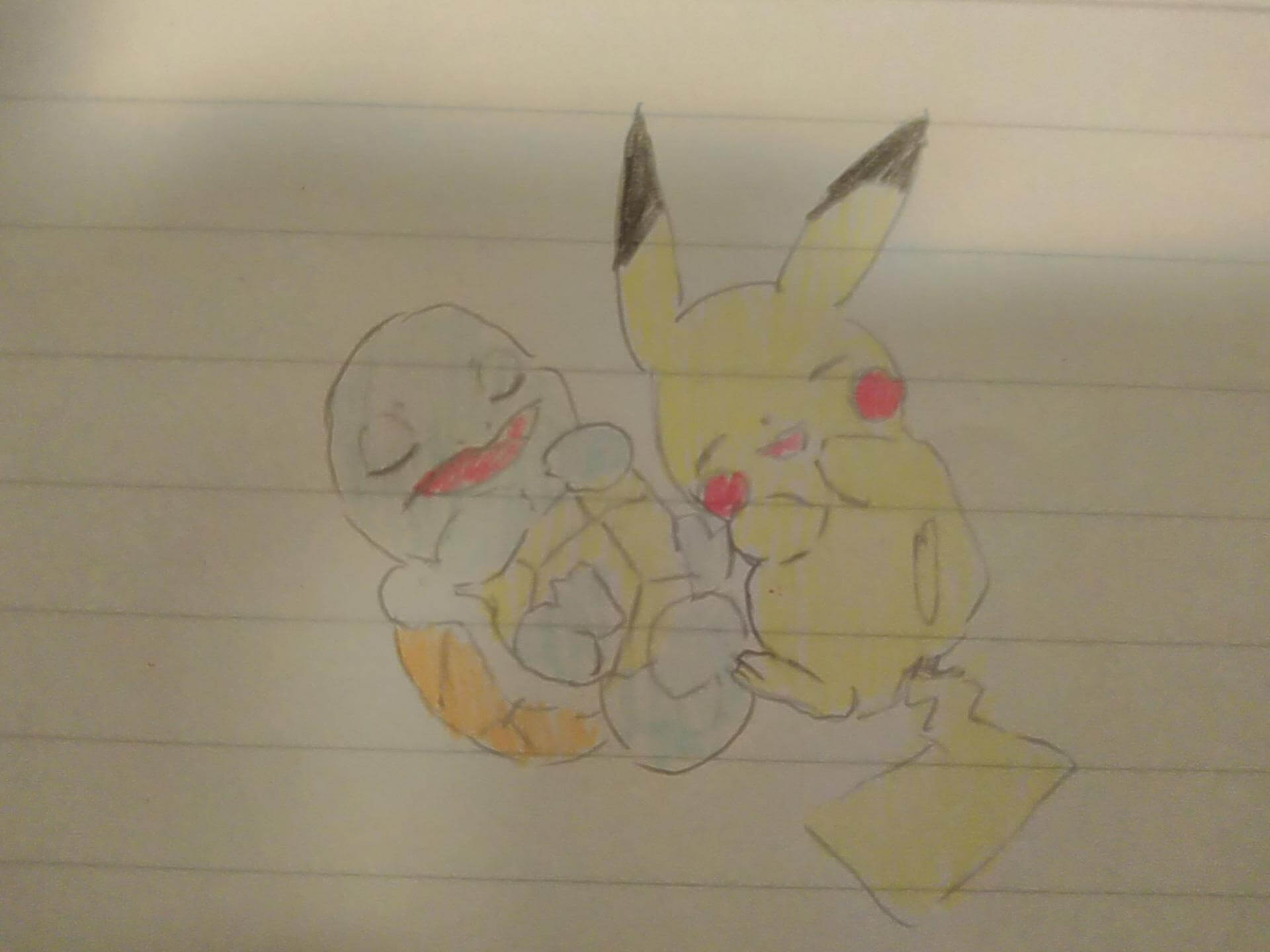 ゼニガメとピカチュウがすやすや寝ているところです。