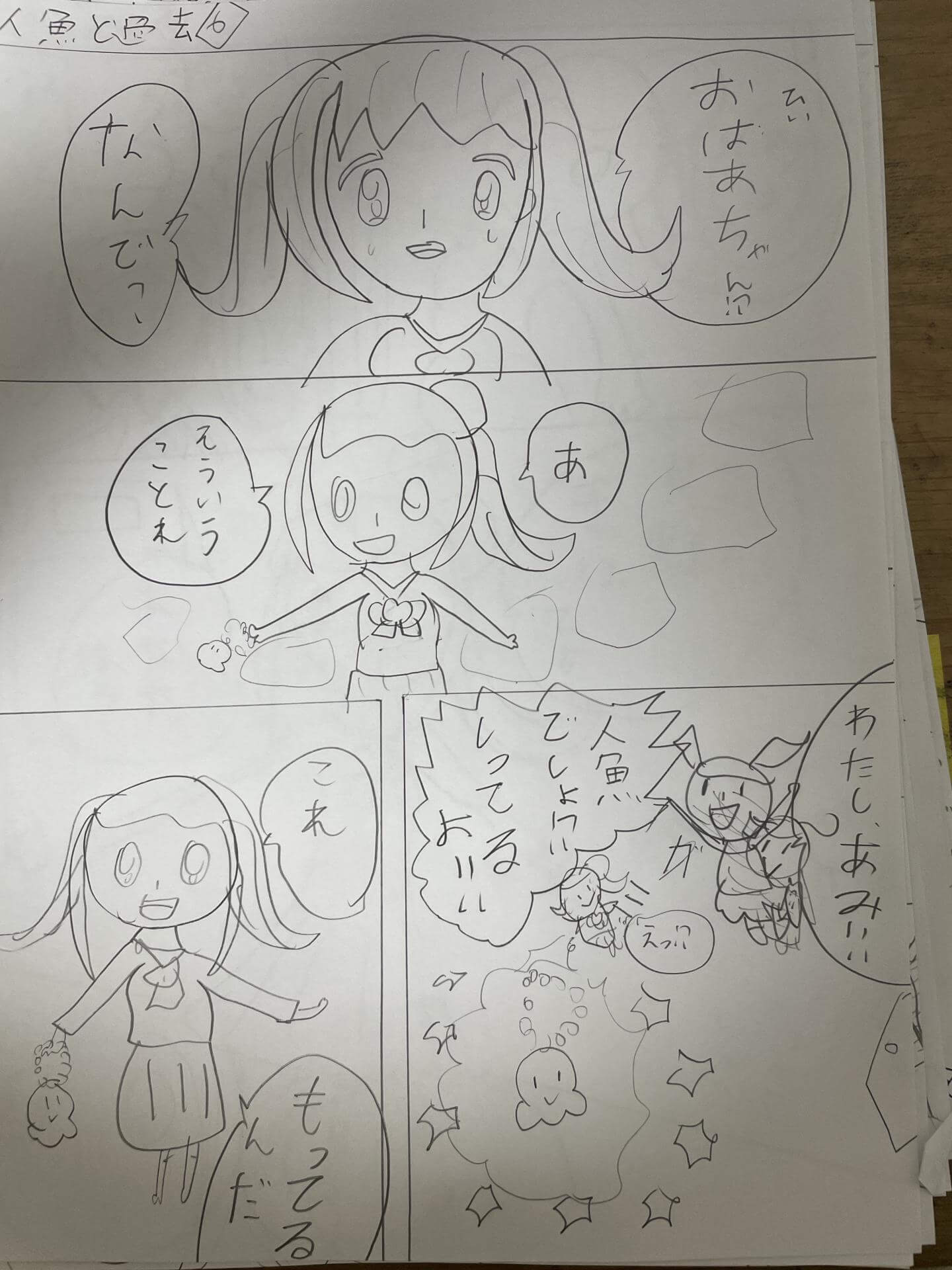人魚と過去を描きました。キーホルダーが…