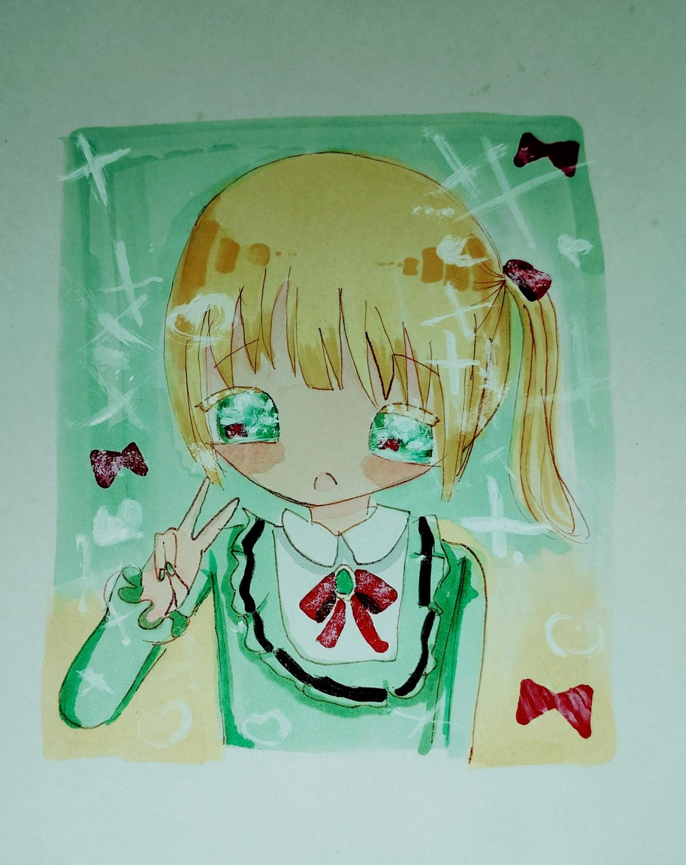 緑と黄色で淡いような感じにしようかな? と思いましたが、少し地味だったのでリボンを赤にしてみました。