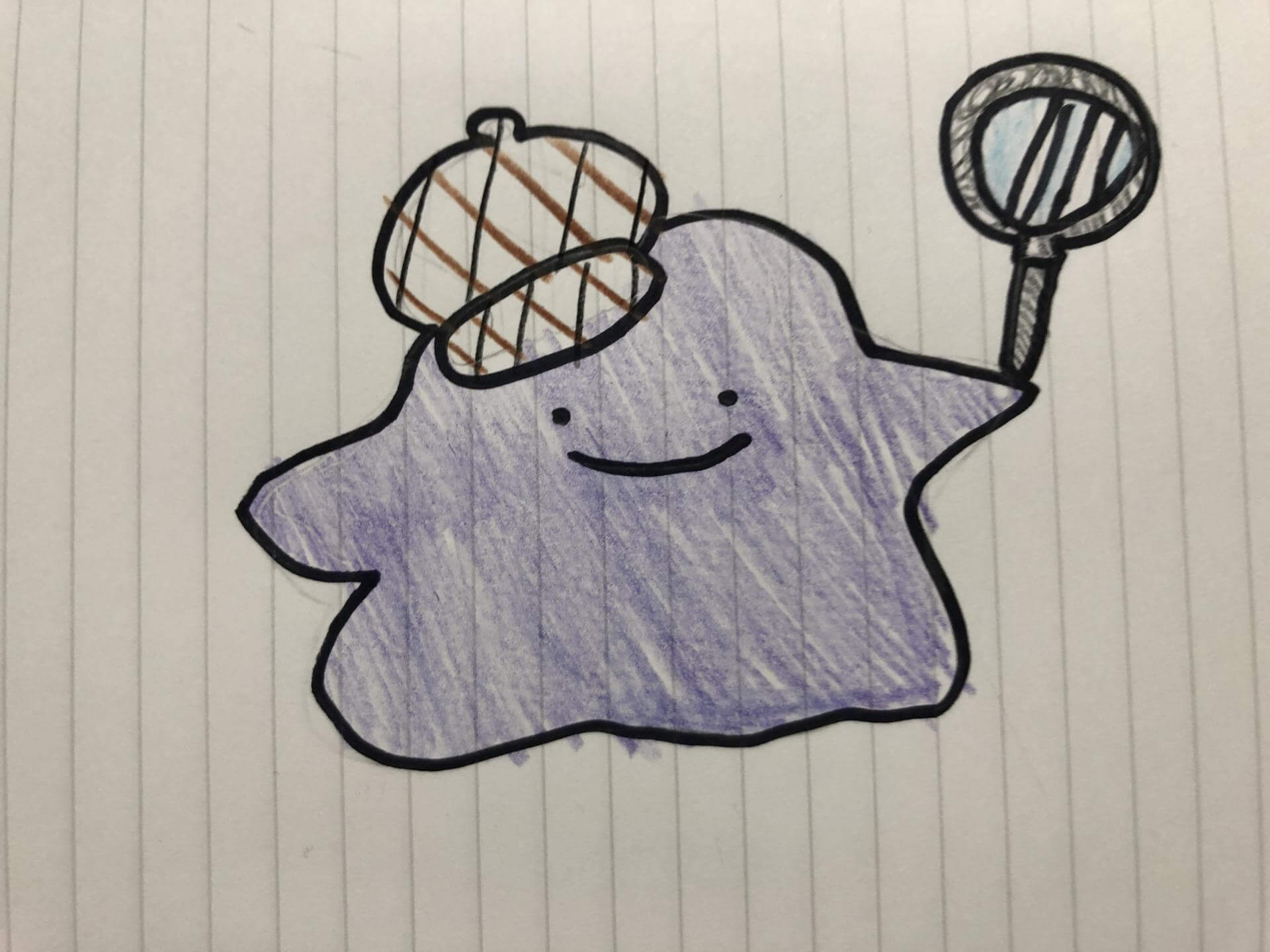 一番最初に買ってもらったポケモングッズがメタモンのぬいぐるみだったから 探偵の服をメタモンが来たらかわいいと思ったから どこに幻のポケモンがいるかあててしれるメタモンです