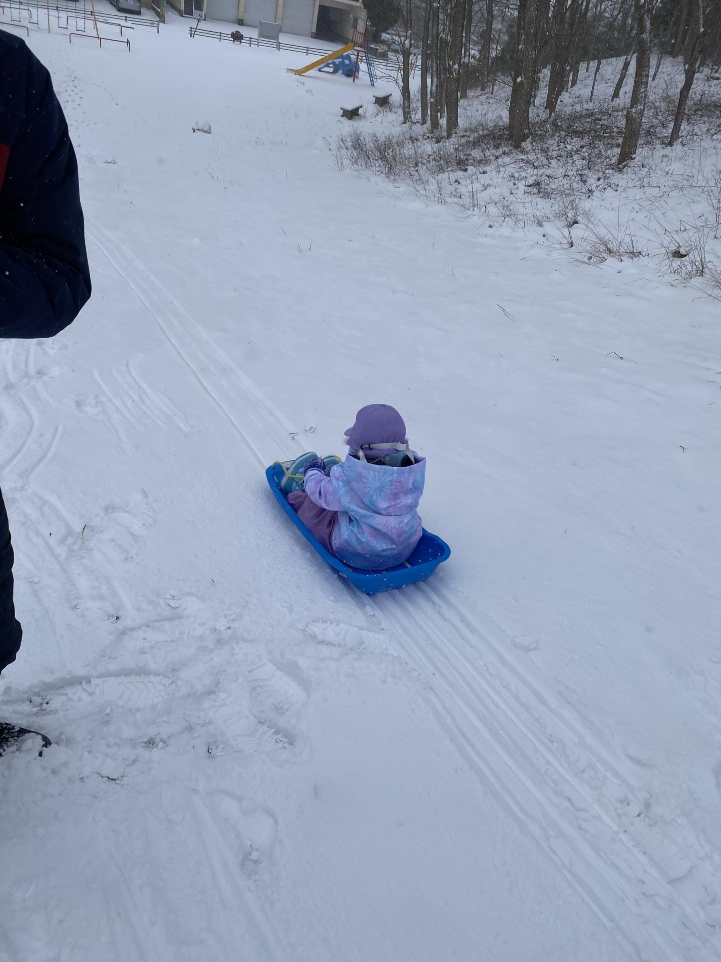 いってきまーす!ワクワクドキドキの初雪!初ソリ!