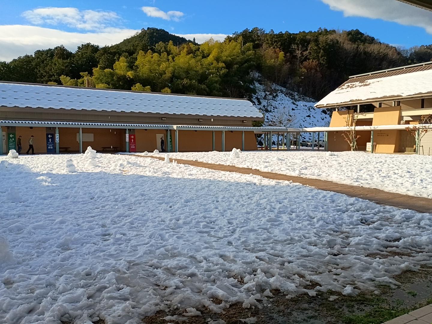 今年初めての雪で雪だるまを♪