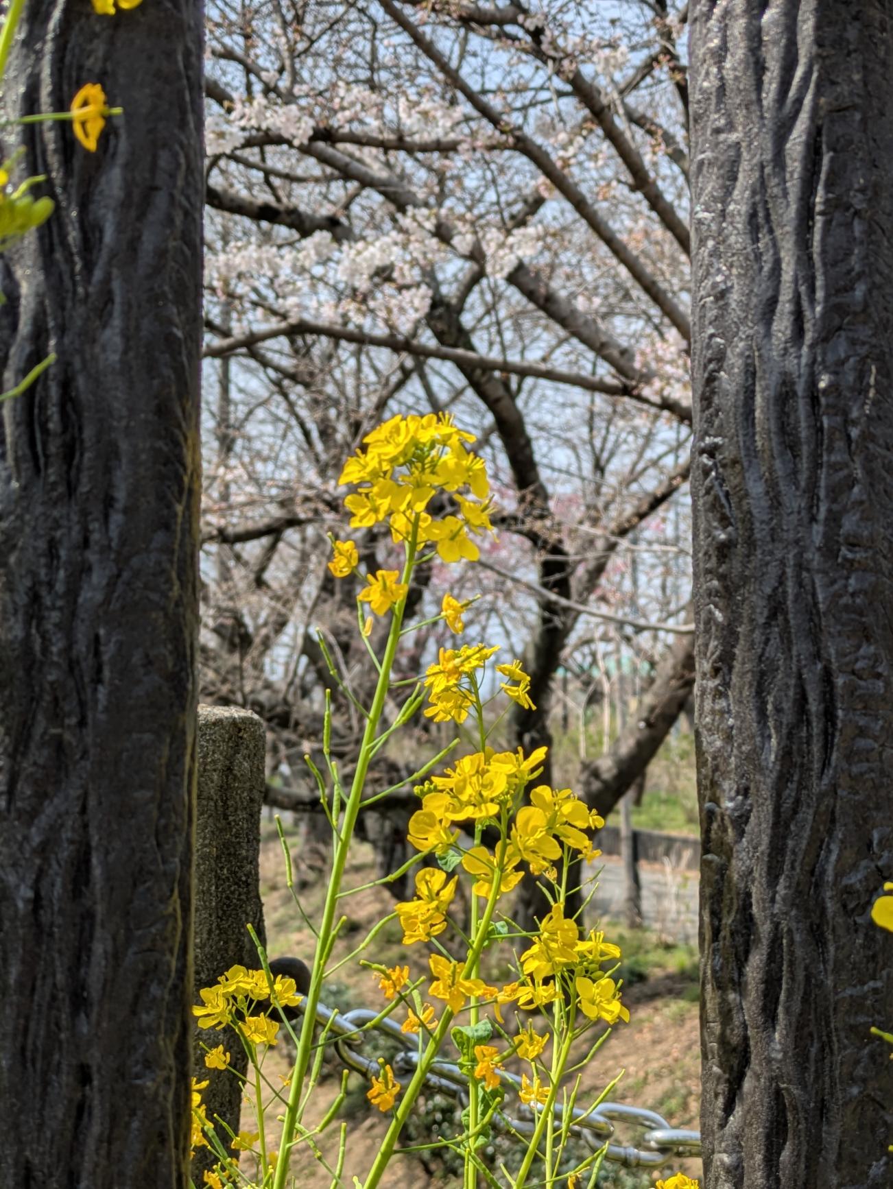 菜の花と一緒に桜見物