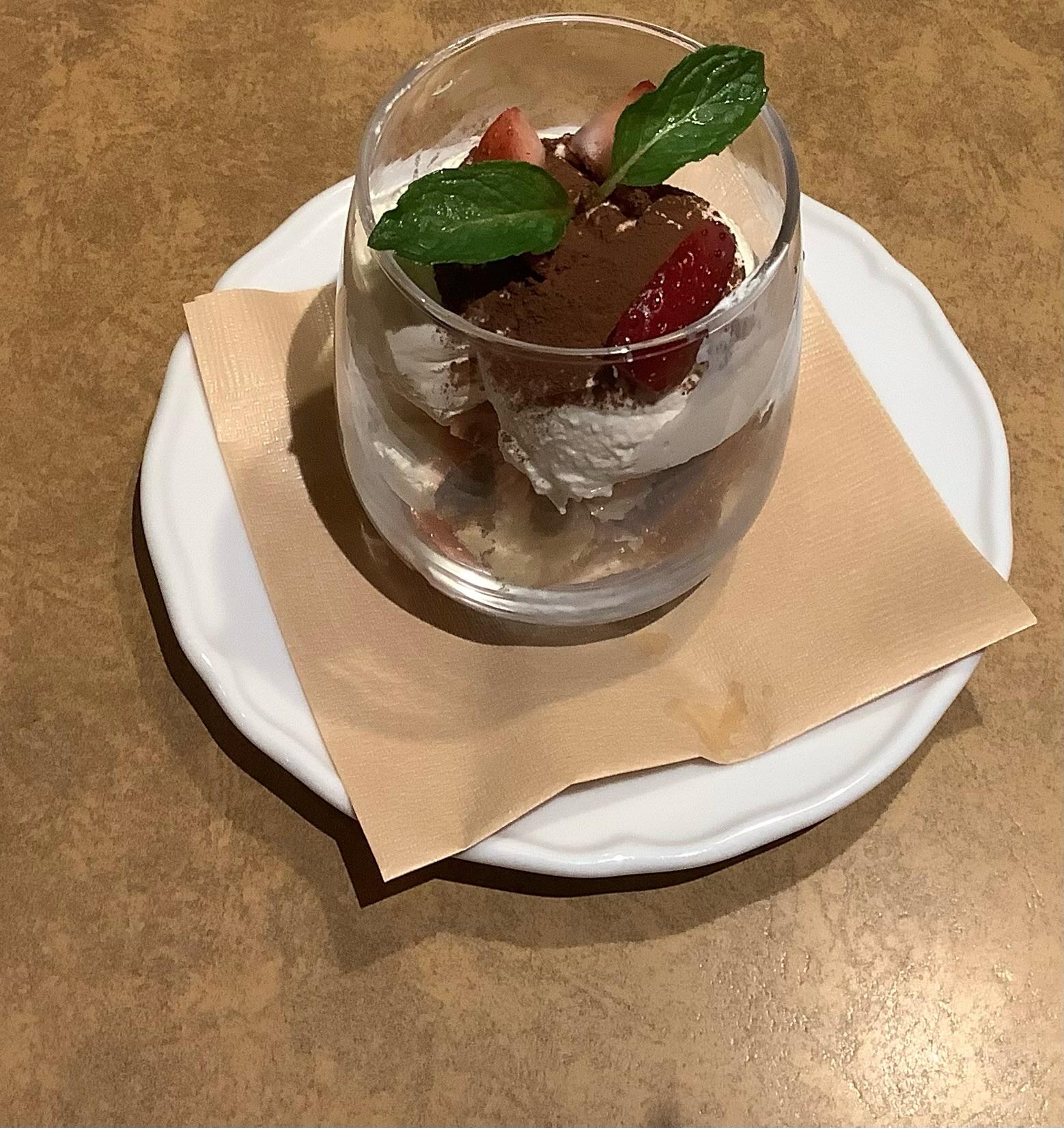 イタリア料理のイチゴのティラミスとドルチェ