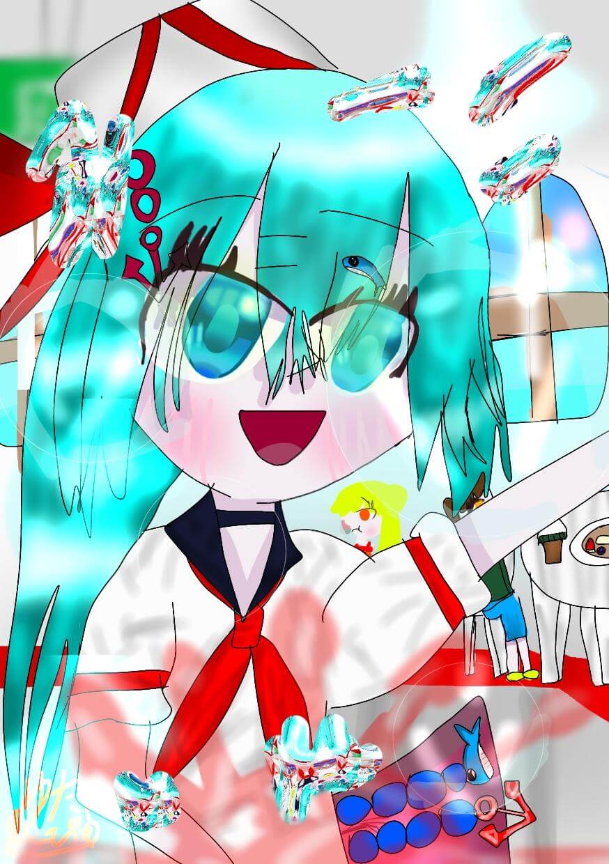 中心の人物に目が行きますが、背景も頑張って書いたので 背景も 見どころです!夏は暑いので涼しくなるような気持ちで見てほしいです!透明感も頑張りました!製作時間は約2時間19分です!めちゃくちゃ頑張りました!右向きの顔も頑張りました!