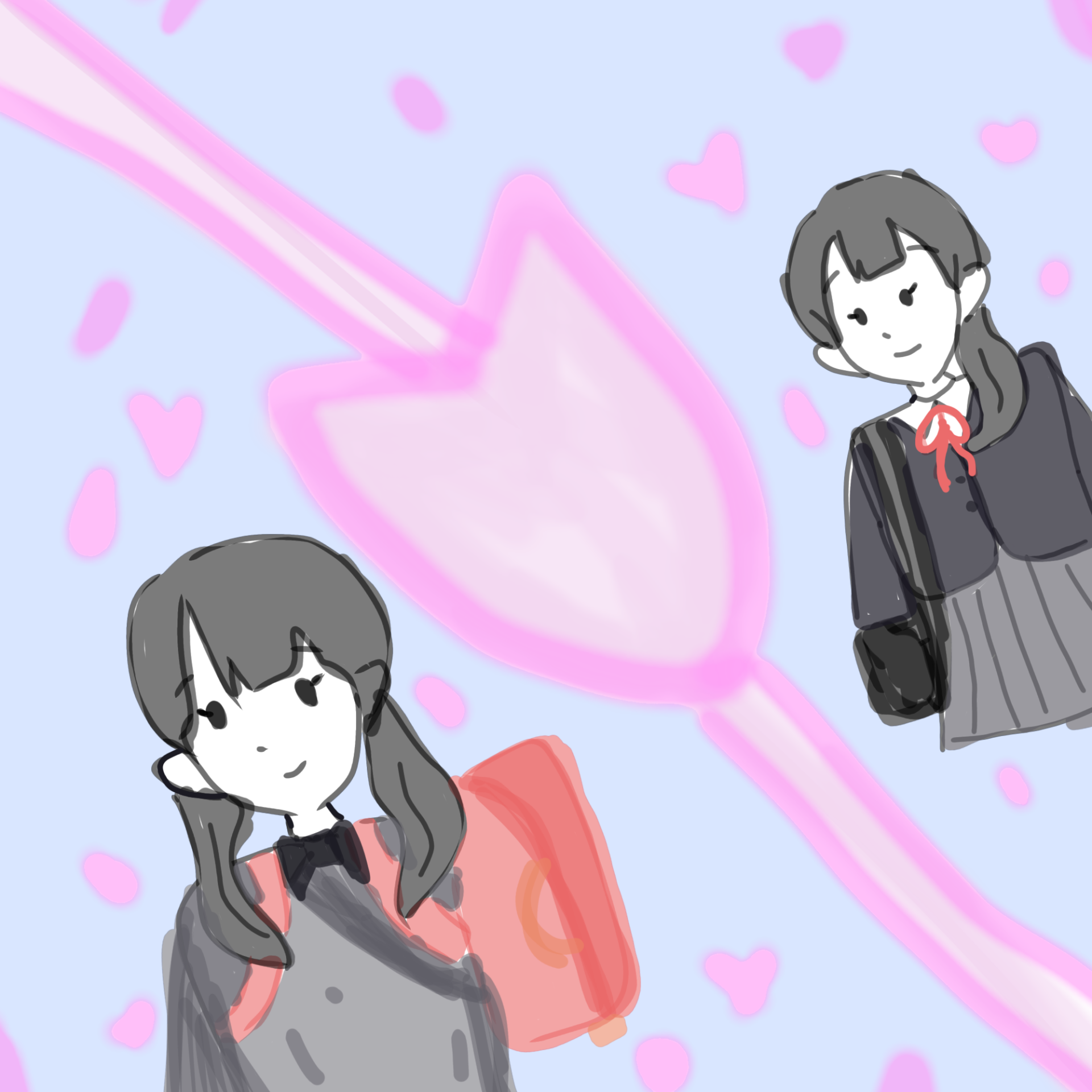桜とともに未来へ進んでいく事を、 桜1枚の区切りで表現しました。 ワクワクする未来に進んでいく表情も 明るく表現しました。