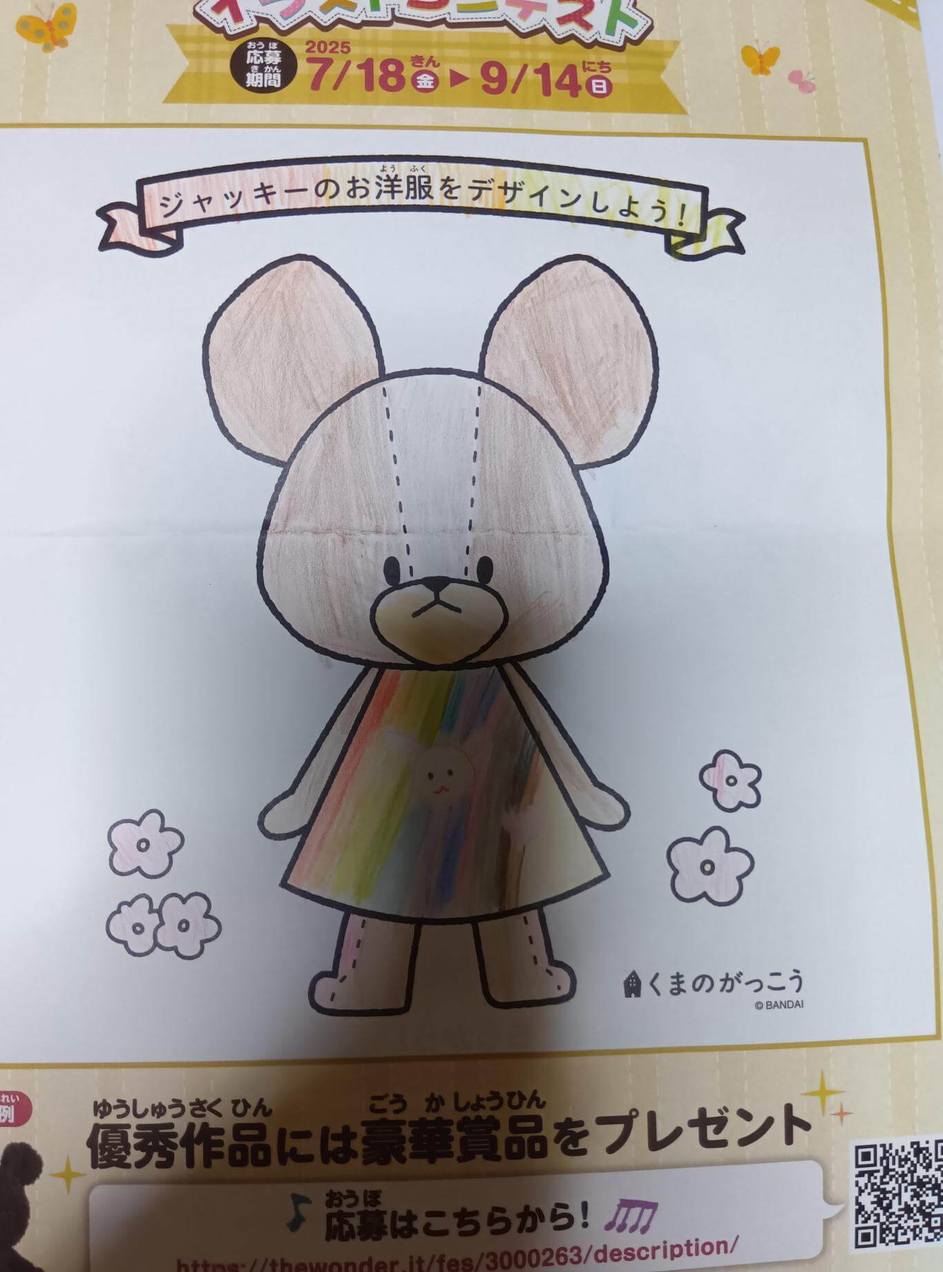 カラフルなドレスに、うさぎさんを真ん中に描いたよ。