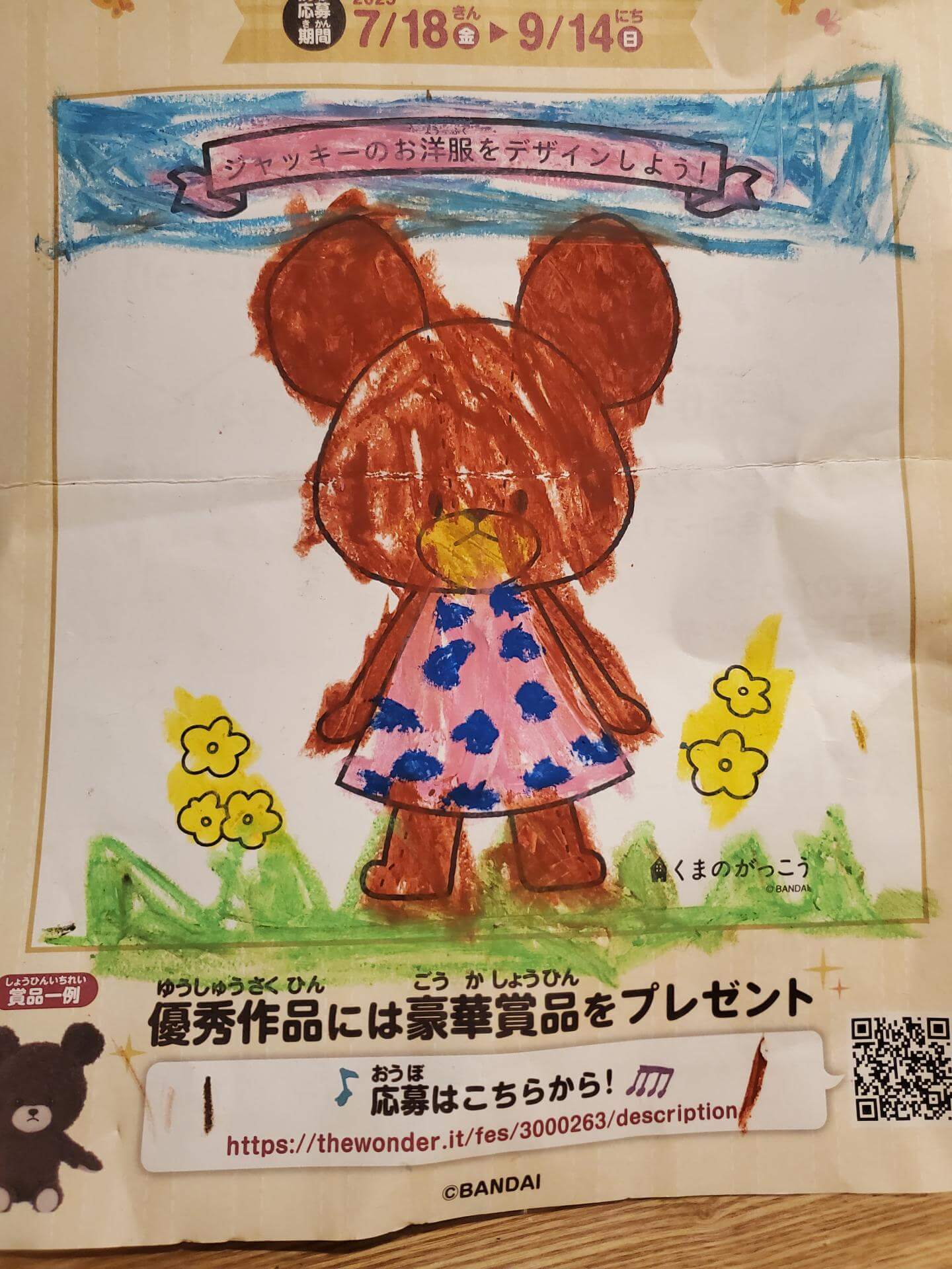 ママがきている、みずたまもようがにあうとおもってかいたよ。おんなのこだからピンクのいろにしたよ。かわいくできたよ。