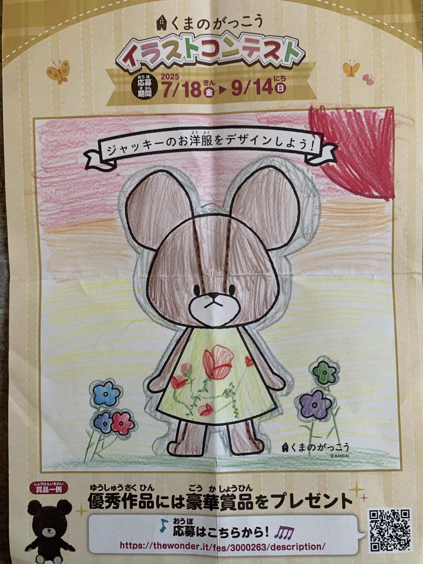 ジャッキーはお花が好きかな?と思ったので私が好きなバラの花柄ワンピースが似合うかなぁと思ったので描きました。お花に囲まれて夕方まで遊んでいたジャッキーにしました。