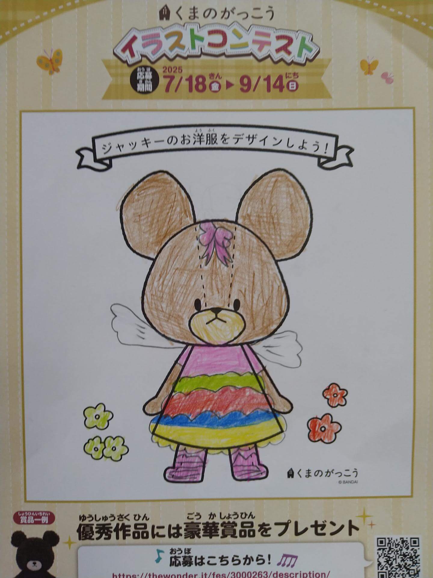 にじを作る妖精になったジャッキー。 頭のリボンと、ふわふわのにじ色の服が特徴。