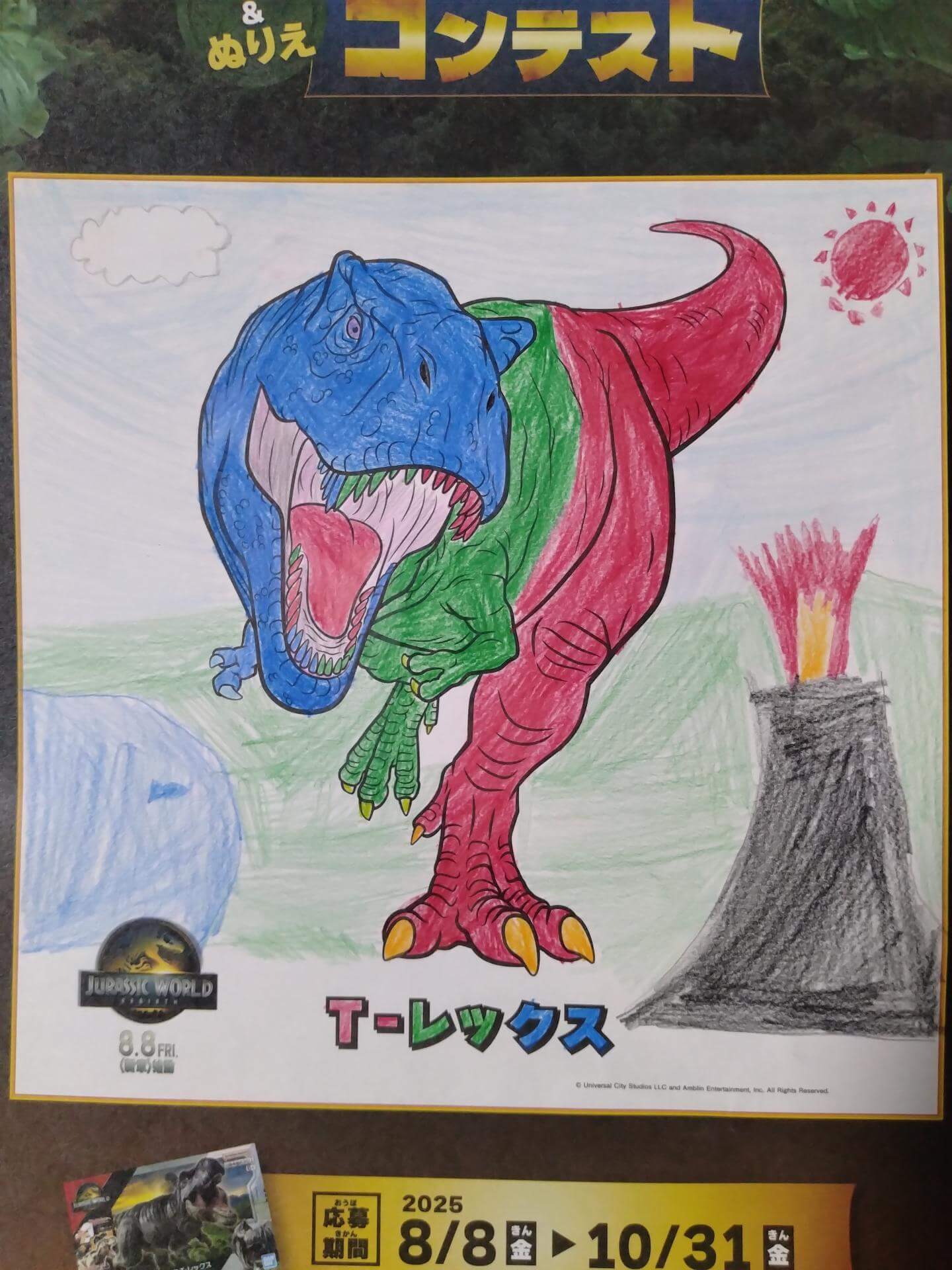 背景も3色の色でT-レックスの歯の色も3色にしました。