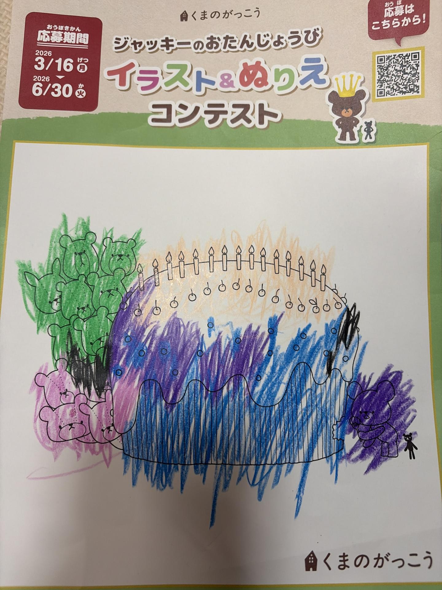 大好きなジャッキーは紫色でぬりました。 黒いお兄ちゃんがお誕生日で隠れてるみたいです
