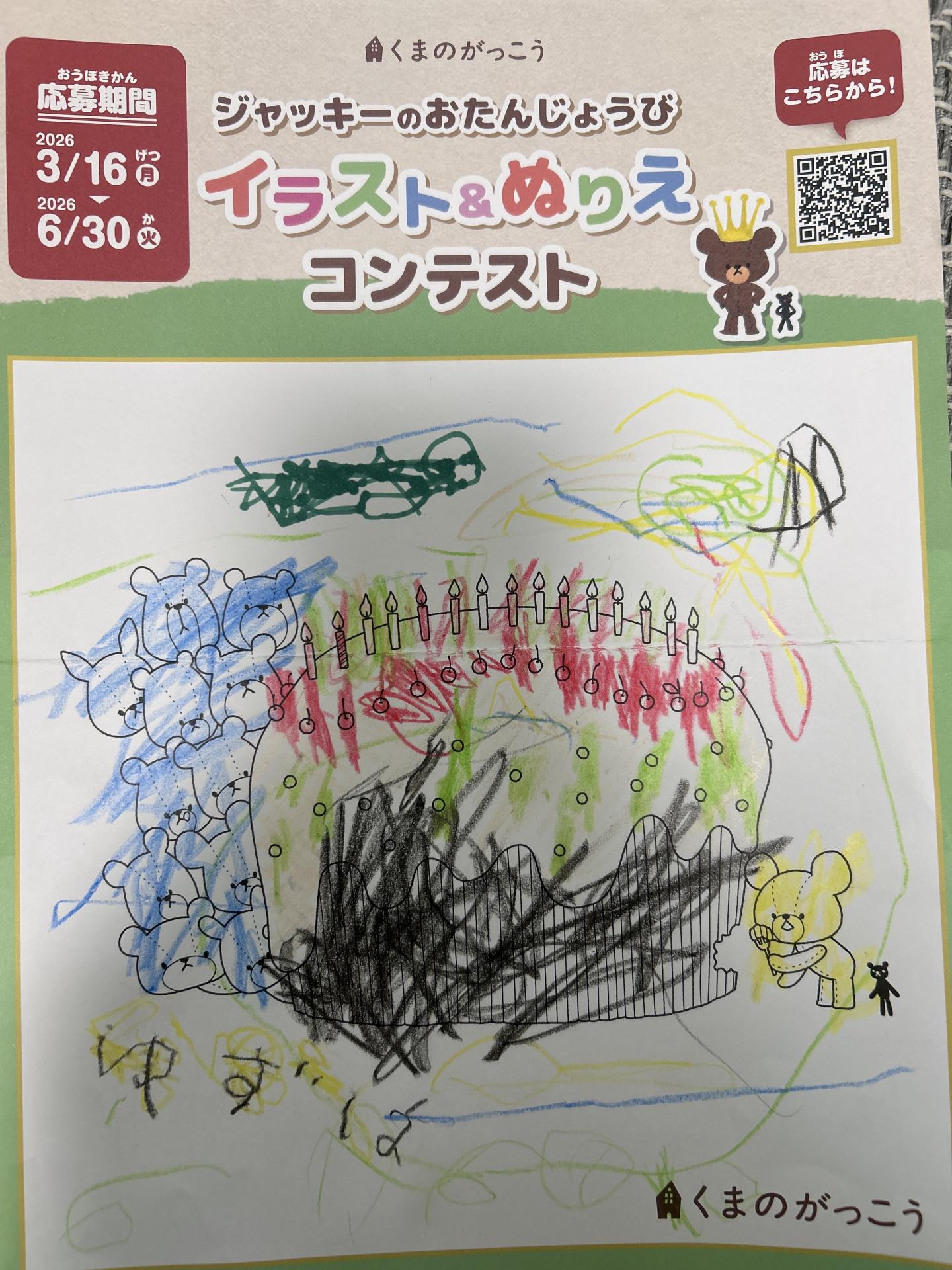 動物やケーキの色分けして、カラフルにしました ローソクを赤、緑にして塗りました