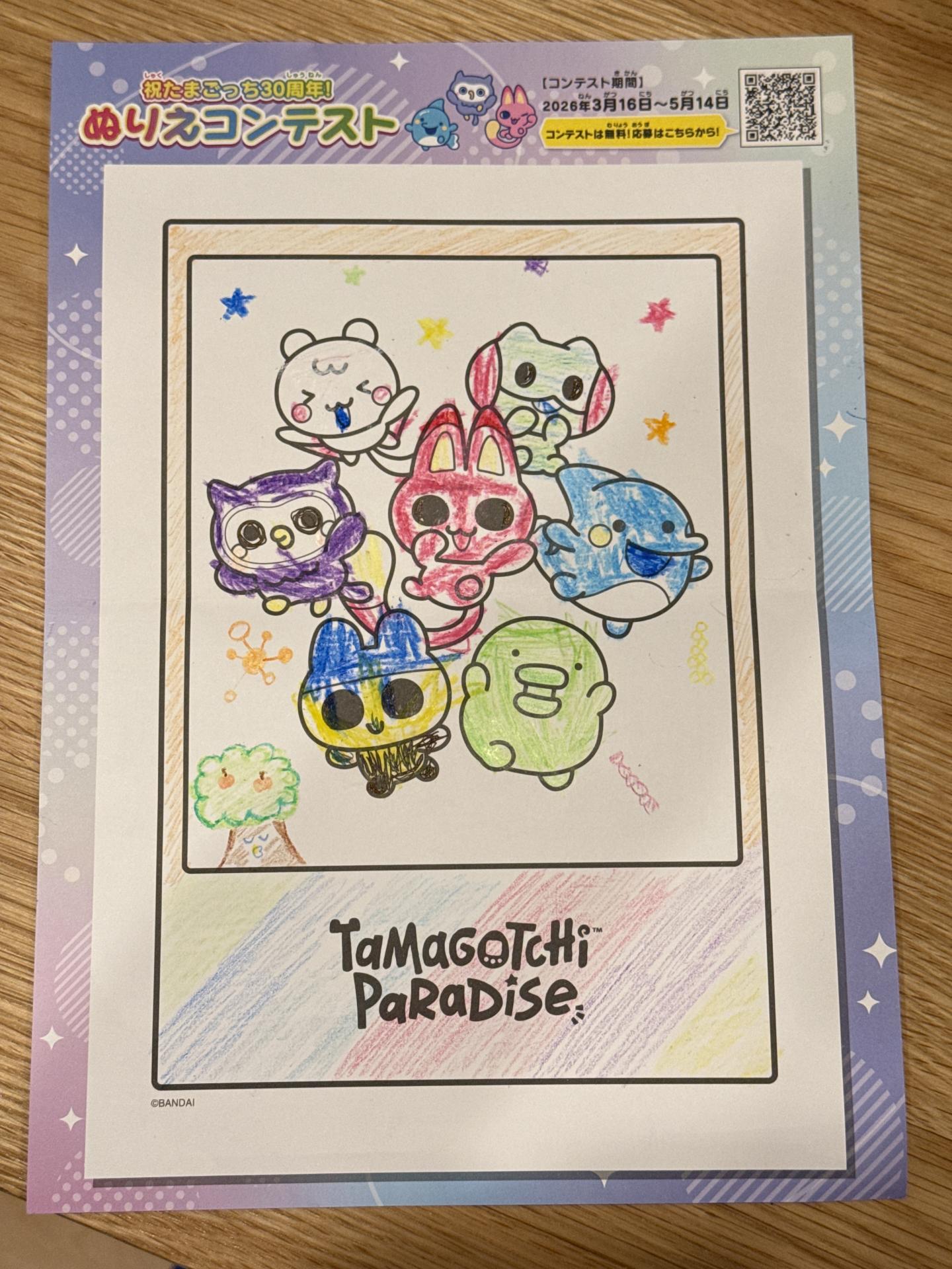 4歳の娘がサンタさんにたまごっちパラダイスをプレゼントしてもらってからだいすきです たまごっちを見ながらぬりえがんばりました