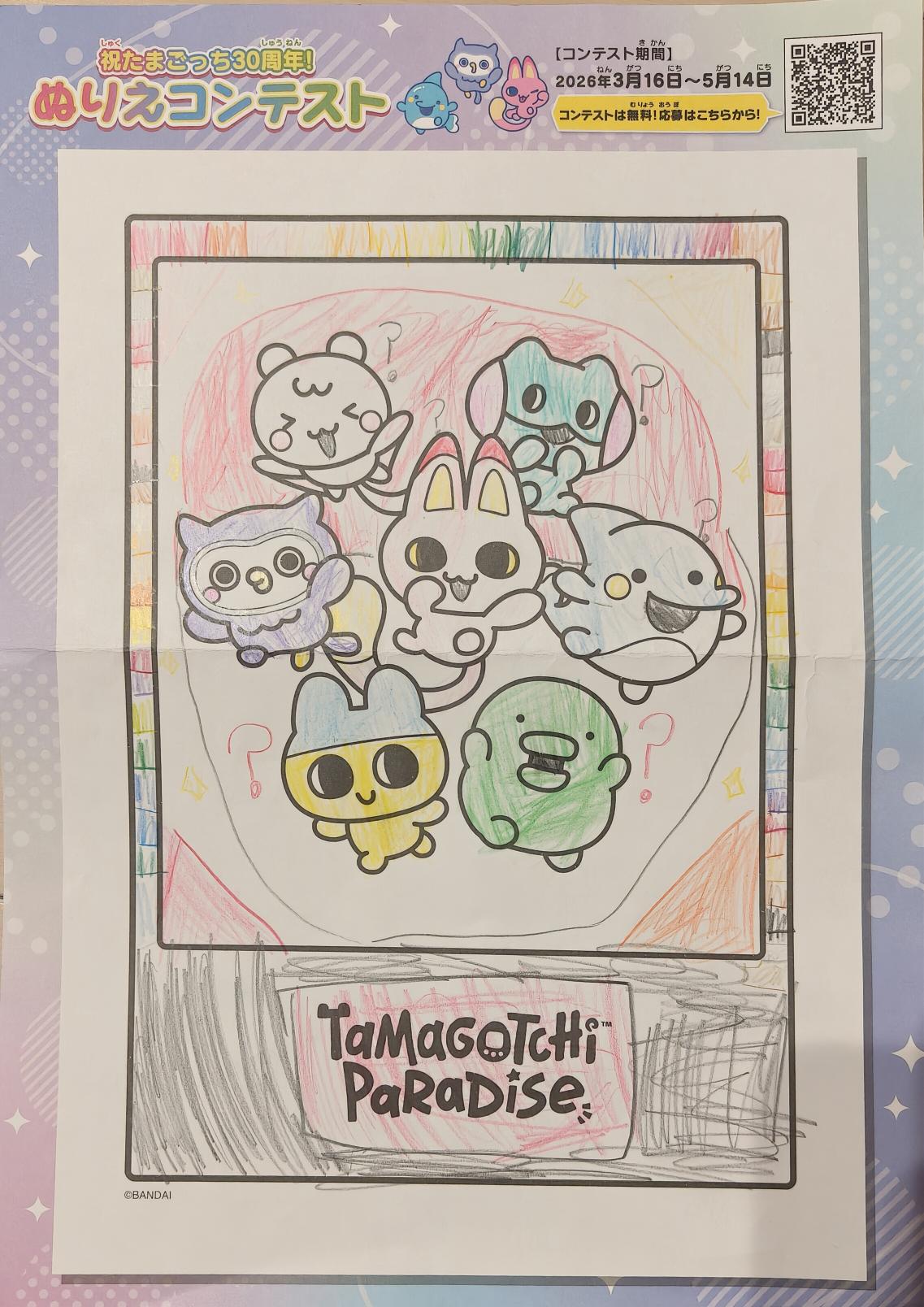 たまごっちのみんなが、ガチャガチャのカプセル入ったところを絵にしました。
