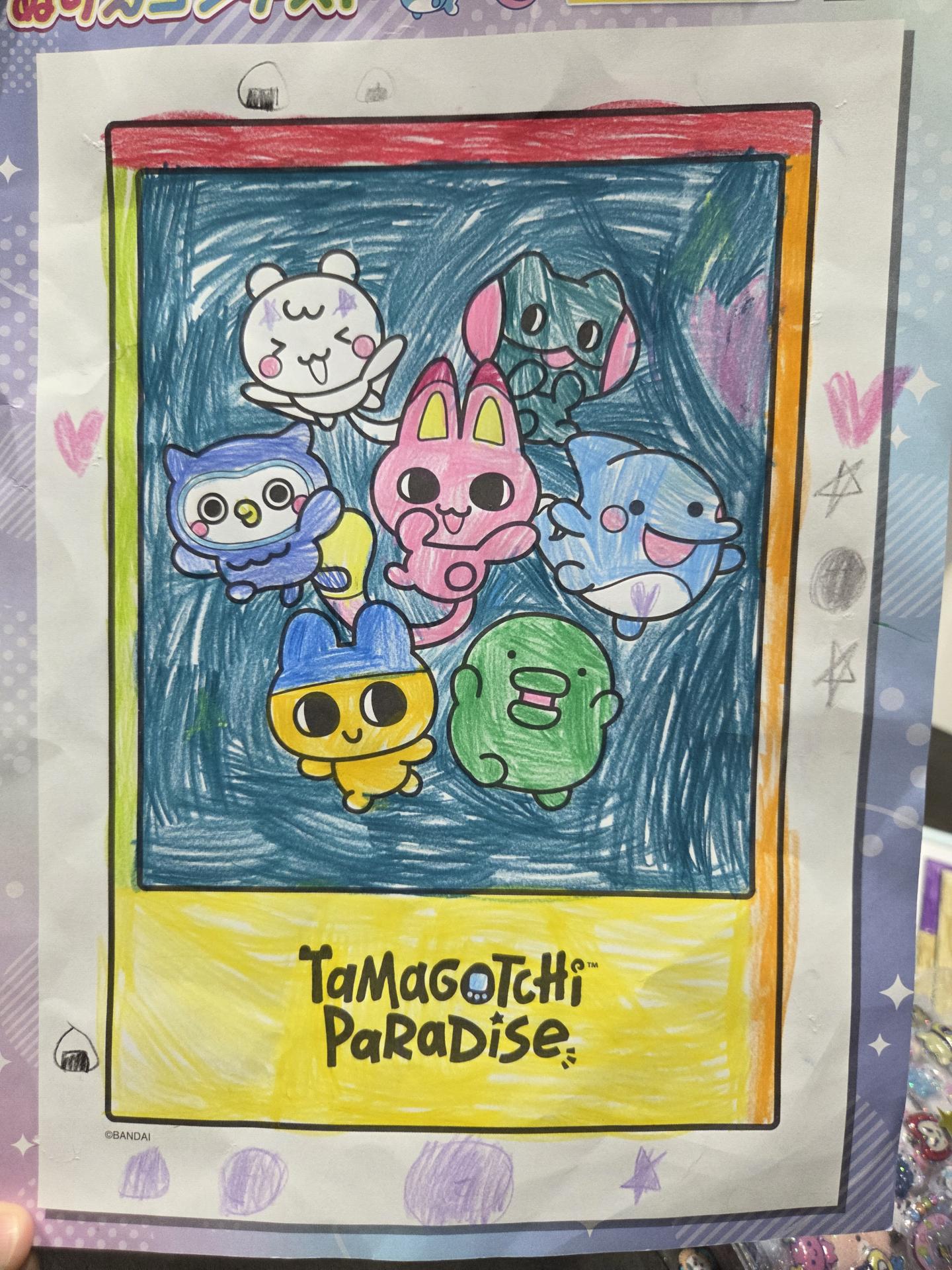 絵の外側に書いた大好物のおにぎりがポイントです。星とハートでキラキラしてみました。