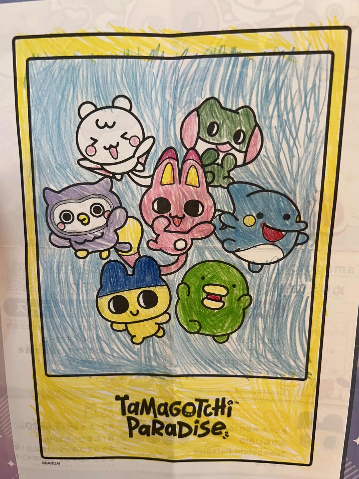 かわいいたまごっちのなかまたちを ていねいにきれいにぬりました。
