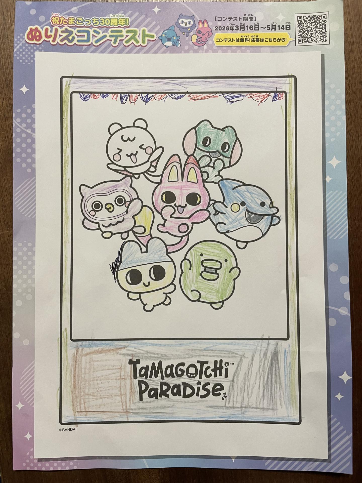 たまごっち達のお誕生日パーティーをイメージして、ぬりえの上をデコッてみました。