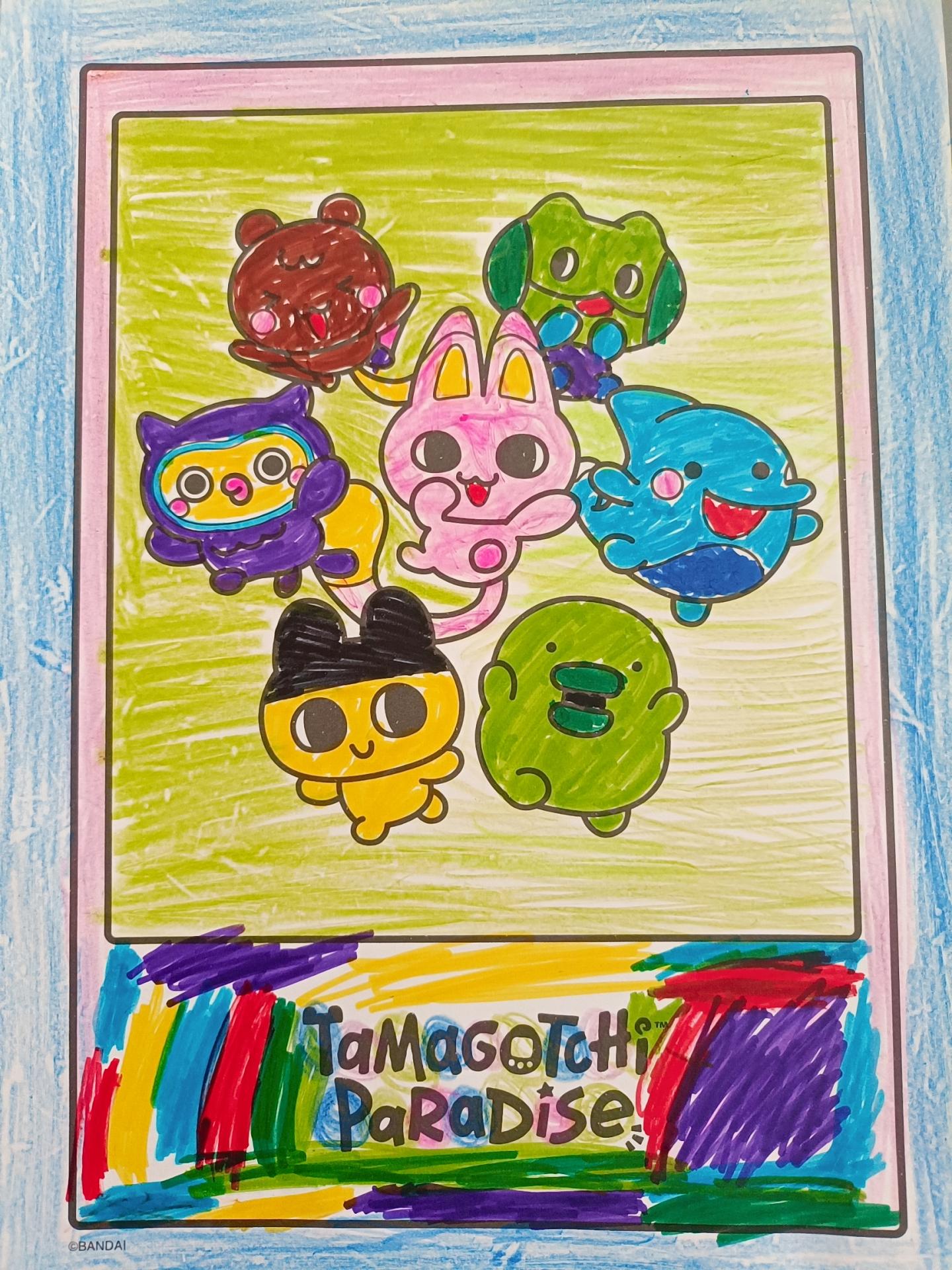 個性的なキャラクターに合ういろを、考えながら、塗りました♬ 一人ずつ色がちがってカラフルにできて、今にも動きそうなくらい賑やになりました。 だいすきなたまごっちとずっと仲良く過ごしたいです♡