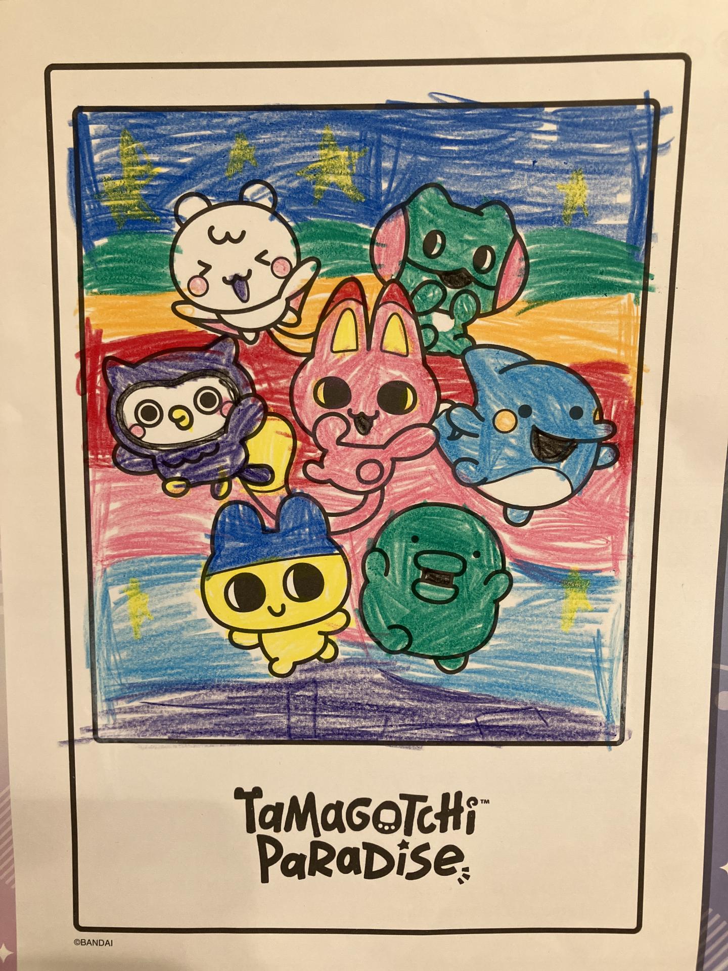 たまごっちの皆が夜に広がる虹を見ているというイメージで描きました。