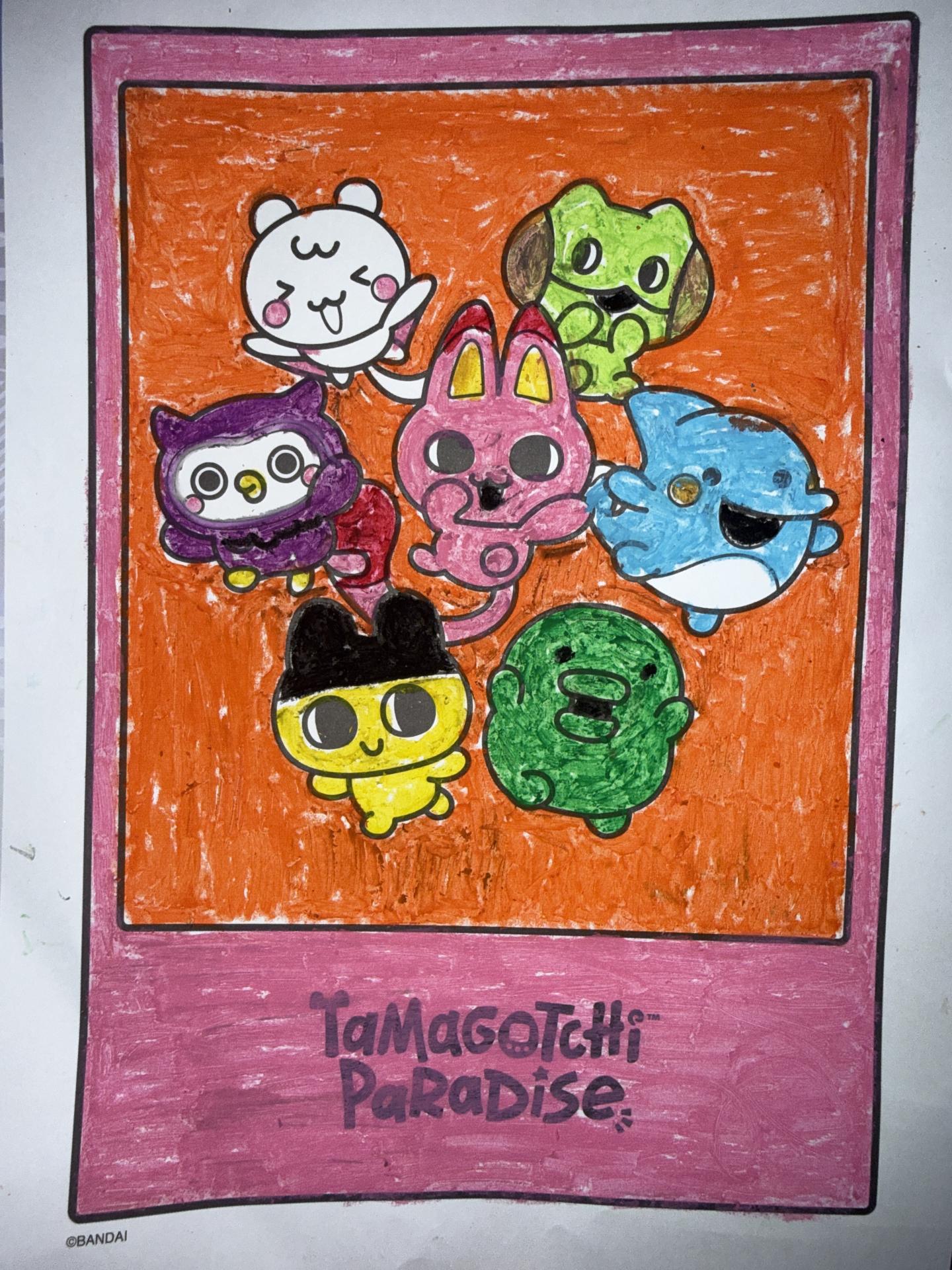 それぞれの個性や特徴を見て分かりやすく色を誇張しました♪ タイトルにもある、7人のたまごっち達が元気よく愉快な日々を過ごしてるイメージで作品を作りました‼︎