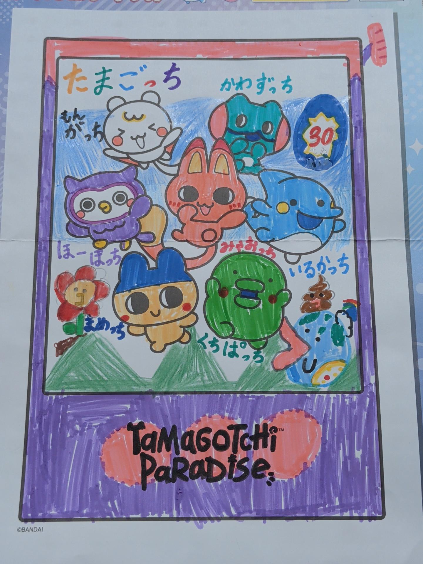 たまごっち達が30週年を迎え、たまごっちの仲間と 次の一歩へと進もうとするテーマ。 とにかく丁寧に色ぬりをしました。