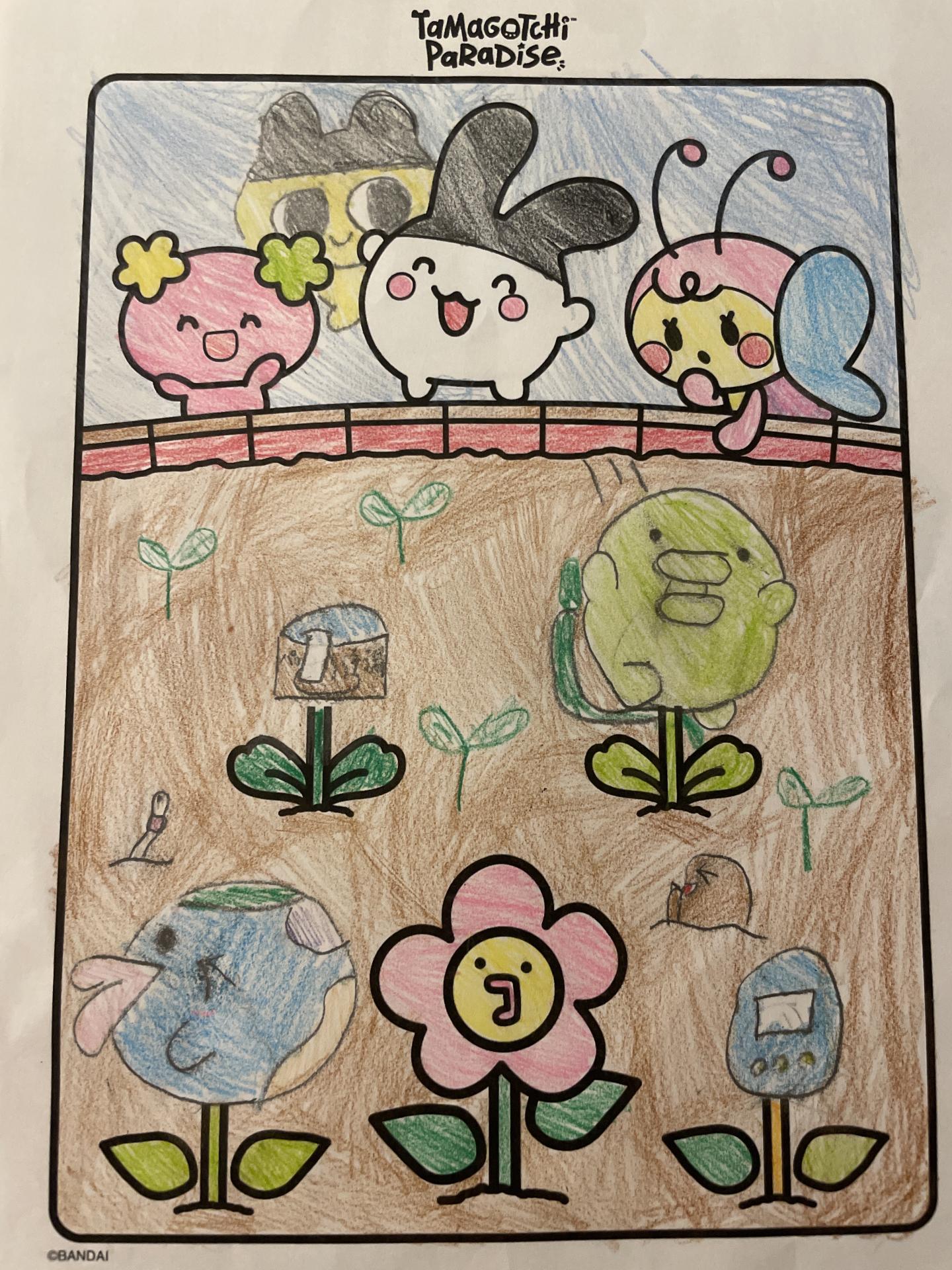 たまごっちのお花が咲いたよ! まめっちものぞいてみてるよ!!