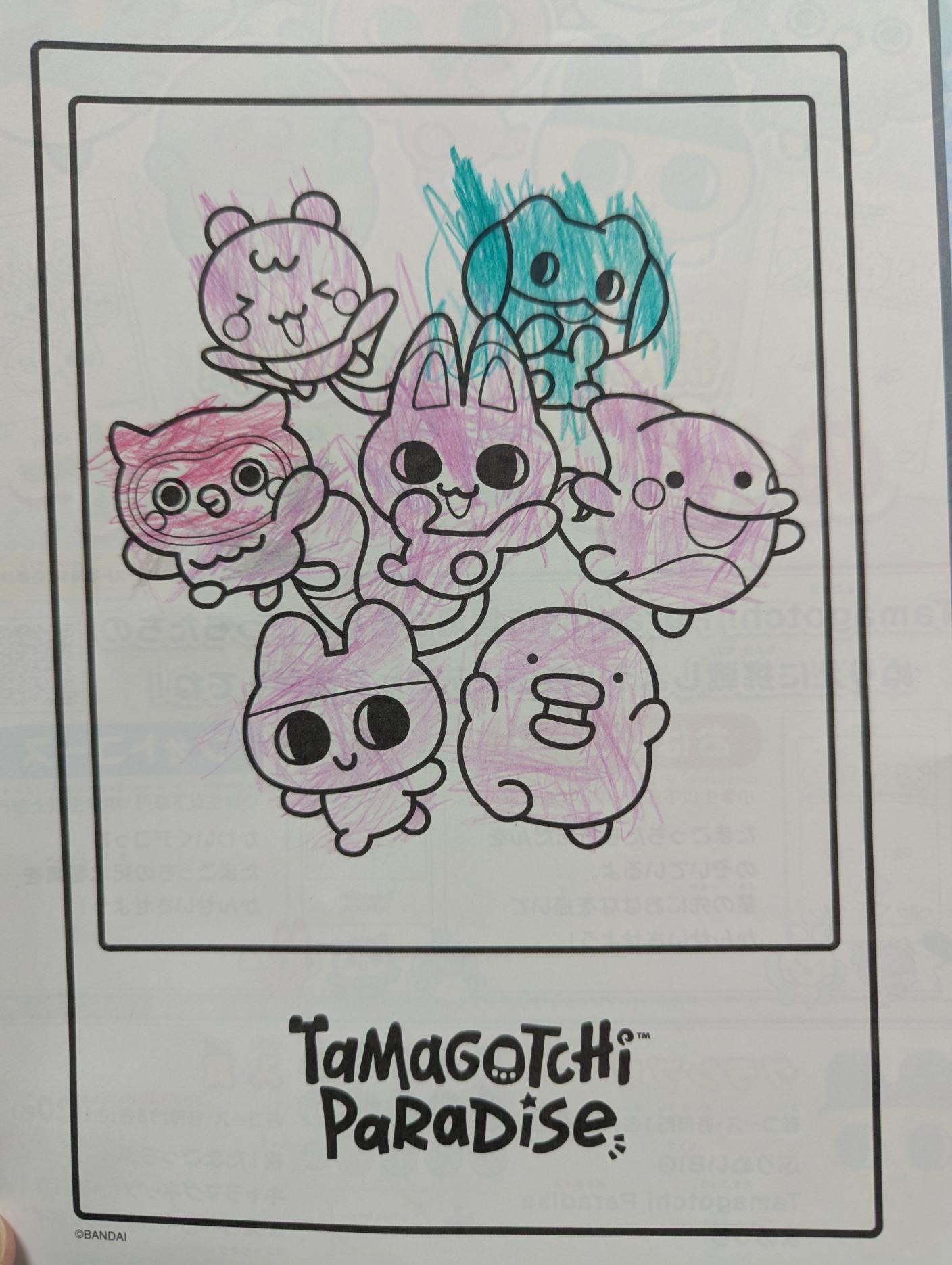 ピンクが好きなのでみんなピンクに塗りました。 かえるさんは緑にしました。