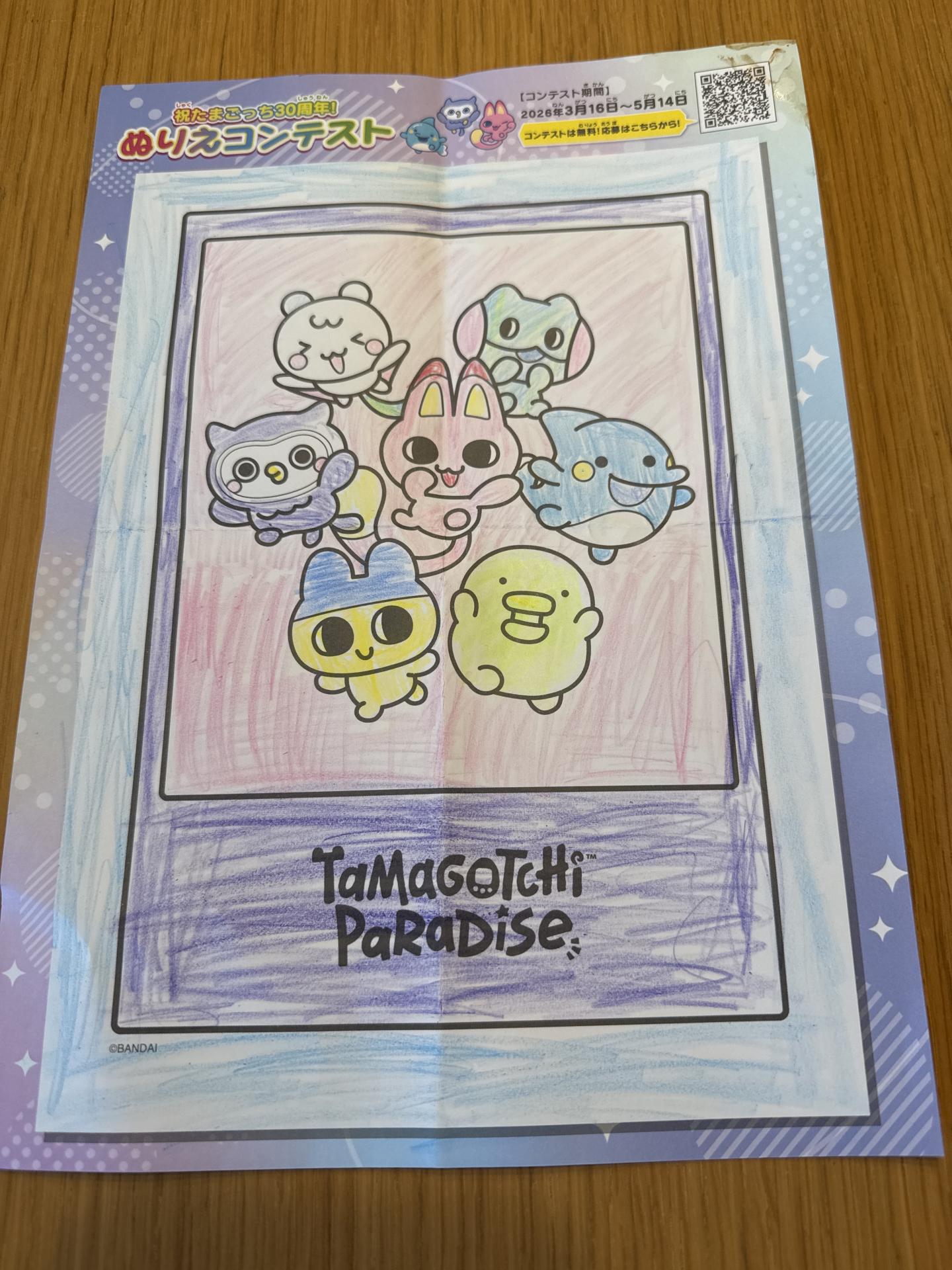 キャラクターを色とりどりに塗りました。賑やかなパーティーをしている様子です。
