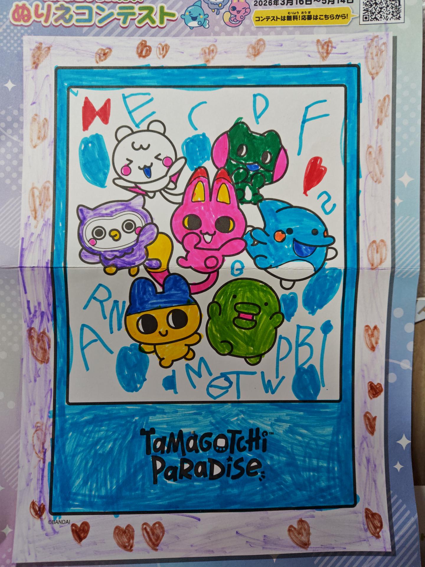 かわいいたまごっちたちのことがだいすきだから、楽しく英語の世界で遊んでいるところをかきました。楽しく遊んで、もっともっとたまごっちたちがともだちのことをだいすきって思ってくれるといいです。
