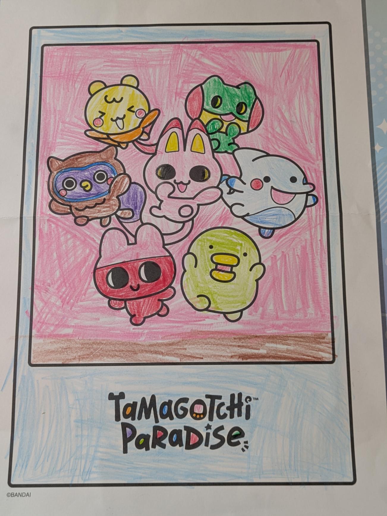 自分の好きな色で塗りました。 お外で遊びながら、たまごっち達が皆で「いえーい」とジャンプしてる様子です。