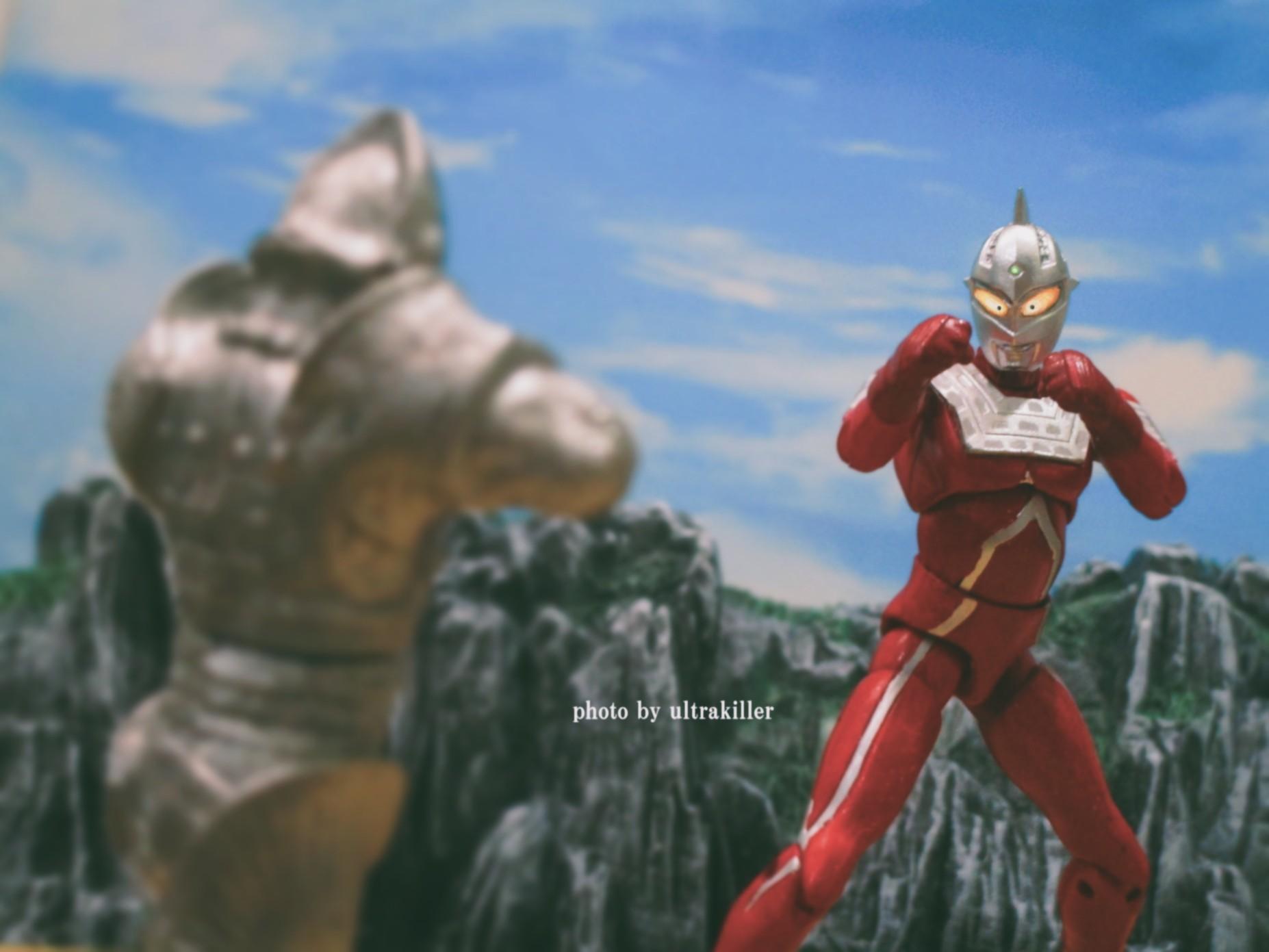 『ウルトラセブン』第27話より、ウルトラセブンとボーグ星人の対峙を、超動αウルトラマンのセブンとボーグ星人のフィギュアを用いて再現してみました。 セブンの模様や目の発光は、画像上で加工させていただきました。